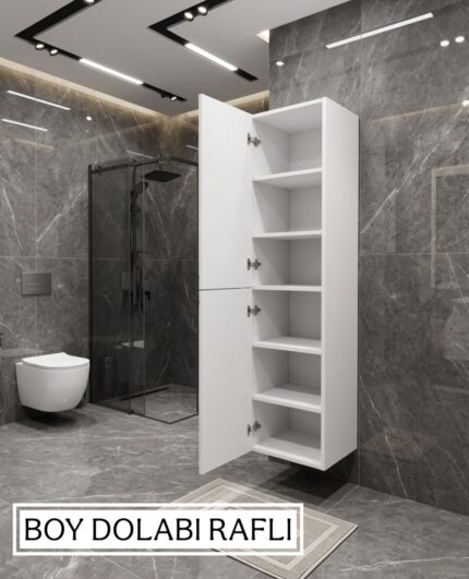 İTALZA RAFLI BOY DOLABI MODELİMİZGövde : 1.SINIF TEK YÜZ MDFÜZERİ İPEK MAT LAKE Çekmece / kapak : 1.SINIF TEK YÜZ MDFÜZERİ İPEK MAT LAKEEN : 40cm - DERİNLİK : 35 cm - BOY : 170 cm
