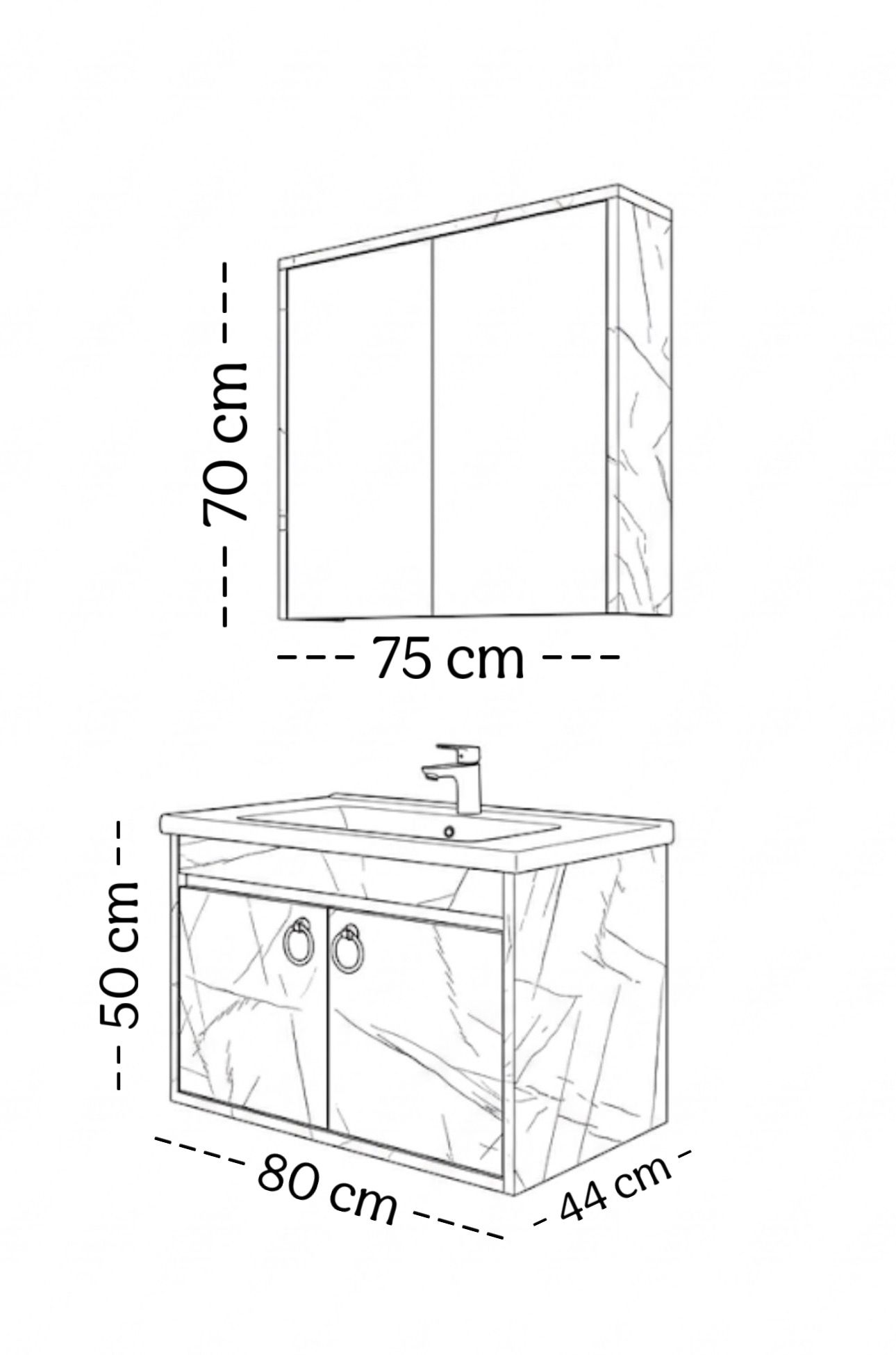 Alt modül: En 80 cm Derinlik 44 cm Yükseklik 50 cm