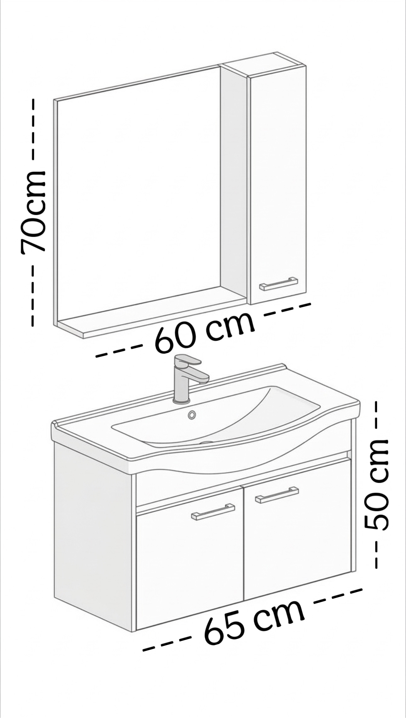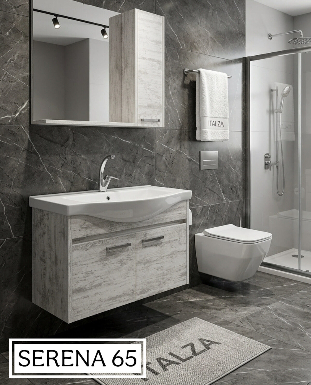 İTALZA SERENA 65 MODELİMİZ Gövde : 1.SINIF BEYAZ MAT MDFLAM Çekmece / kapak : 1.SINIF BEYAZ MAT MDFLAM Lavabo : SERAMİK LAVABO